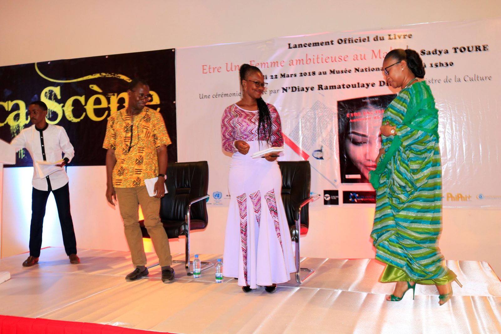Nous étions reçus en audience le 06 Mars 2018 par le Ministre de la Culture Madame N’Diaye Ramatoulaye Diallo afin qu’elle parraine la cérémonie officielle de dédicace.